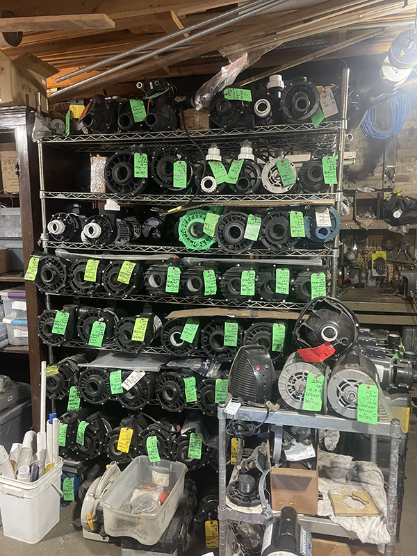 On a very cold winter day in 2007, My customer Sandy, and I spent over $800 to buy an XP pump for her LA Spa which was in danger of freezing. We paid for expedited shipping. There was and is no local place to buy these pumps. I made up my mind that day that I had to get the equipment and knowledge to rebuild the pumps myself, so that customers don’t have to wait too long and pay too much for pumps. Since then, I have hired, The Amazing Steve, and together we have become very expert at pump rebuilding. We have accumulated a large inventory of over 200 hot tub pumps, so that almost any customer can have their tub pump rebuilt in a couple days, instead of a couple weeks. We search the world over for the finest German, Japanese, and American bearings and seals. We stock hundreds of capacitors, start switches and other parts often needed.